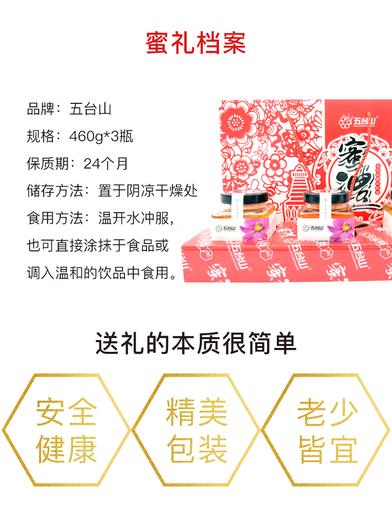 五臺(tái)山剪紙蜂蜜禮盒460gx3瓶