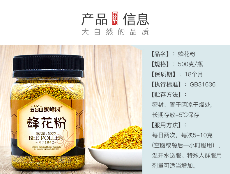 五臺(tái)山蜜蜂園蜂花粉500g